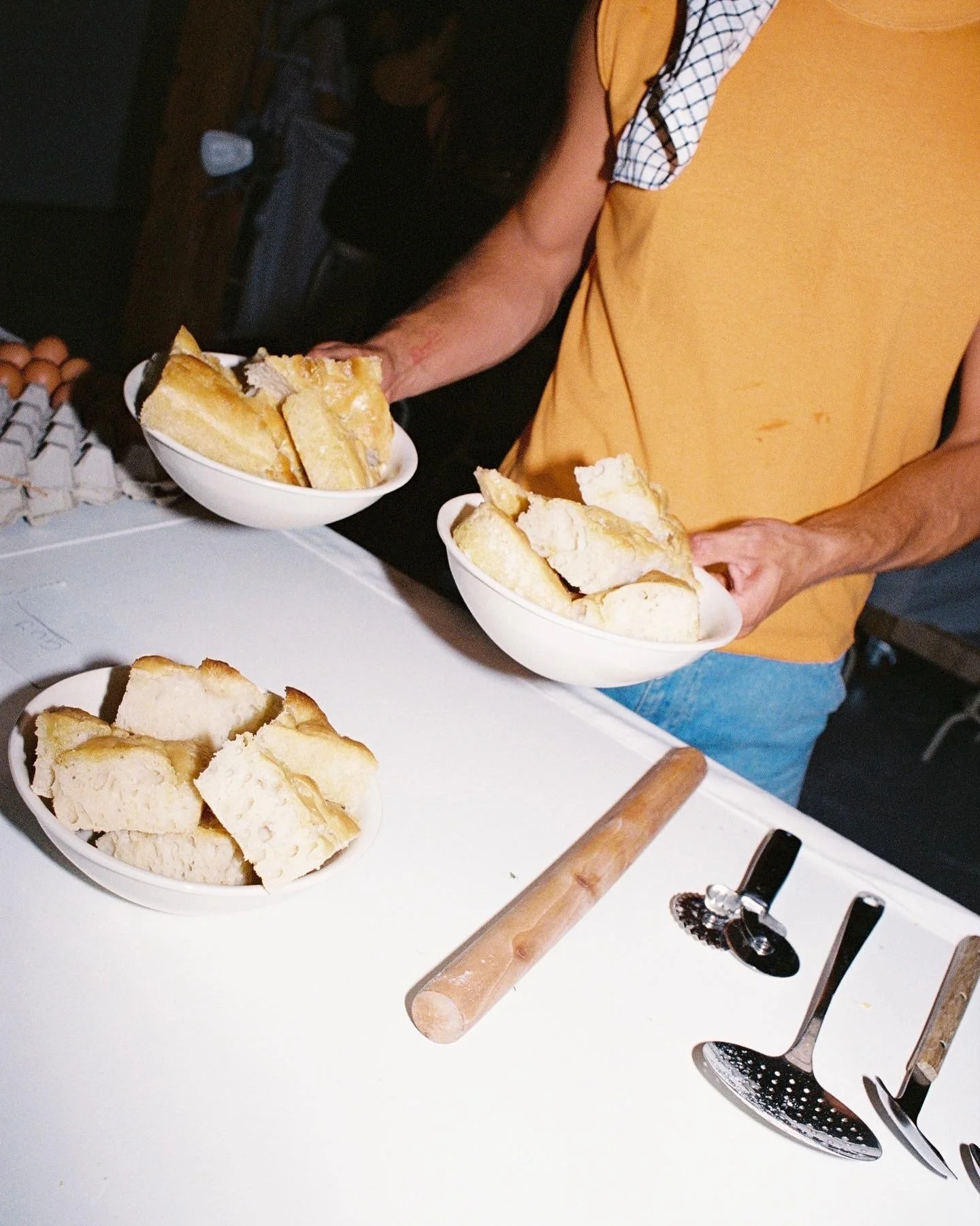 Pop-Up Dinner, Collingwood.A collaboration with friends Simon and Guy (Pottery Boy) for a pop-up dinner in Guy’s studio in Collingwood, who also handmade the ceramic plates and bowls for the evening.